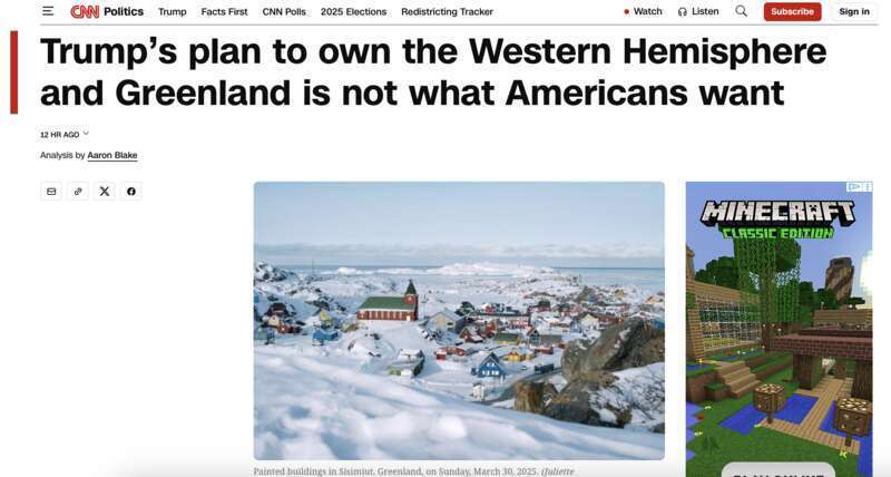 美国有线电视新闻网报道称,特朗普曾在2025年1月向格陵兰岛、加拿大和巴拿马发出威胁,当时,他的言辞被认为是“不严肃的恶作剧”或“不切实际的幻想”,但一年后,人们必须重新看待这些事情了。