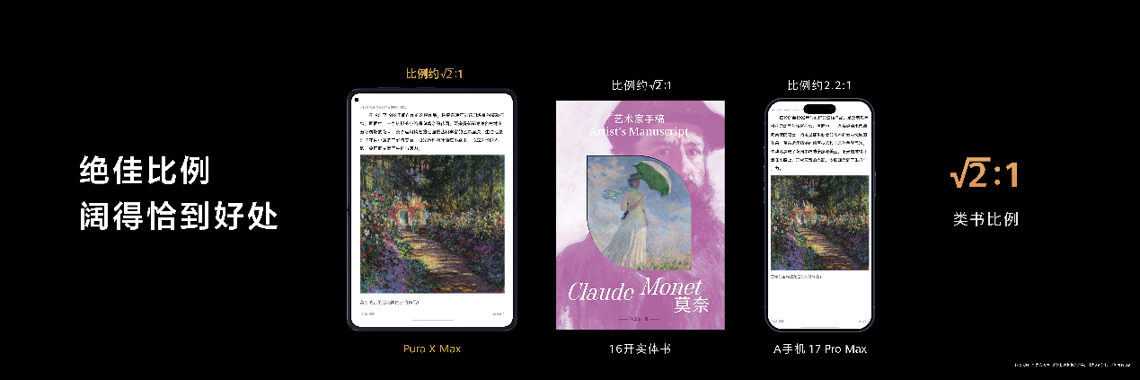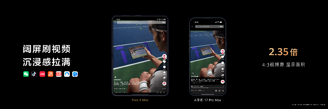 全新大阔折旗舰华为 Pura X Max,凭借其比例:1 的阔型内屏、独特外屏以及生态伙伴的深度共创,在沉浸阅读、视频资讯、游戏娱乐、影像创作、办公学习等多个场景实现体验革新。